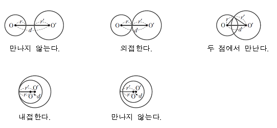 두 원은 다음과 같은 관계로 존재할 수 있다.