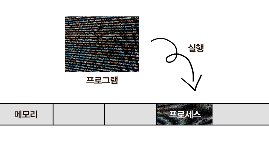 - 프로그램 -> 프로세스 를 그림으로 표현하면 다음과 같다.