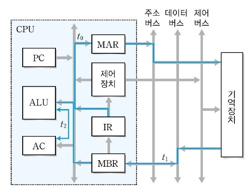 - MBR (메모리 버퍼 레지스터) : 주기억장치의 내용을 임시로 저장하는 역할