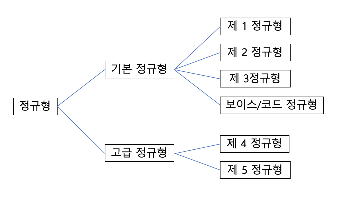 정규화된 결과를 정규형이라고 하며, 정규형은 기본 정규형 고급 정규형으로 나뉜다.