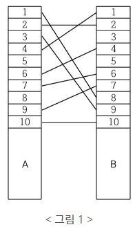 ② A의 3번과 B의 9번이 연결된다면 서로 교차하지 않는다. ( 1 - 8 / 3 - 9 )